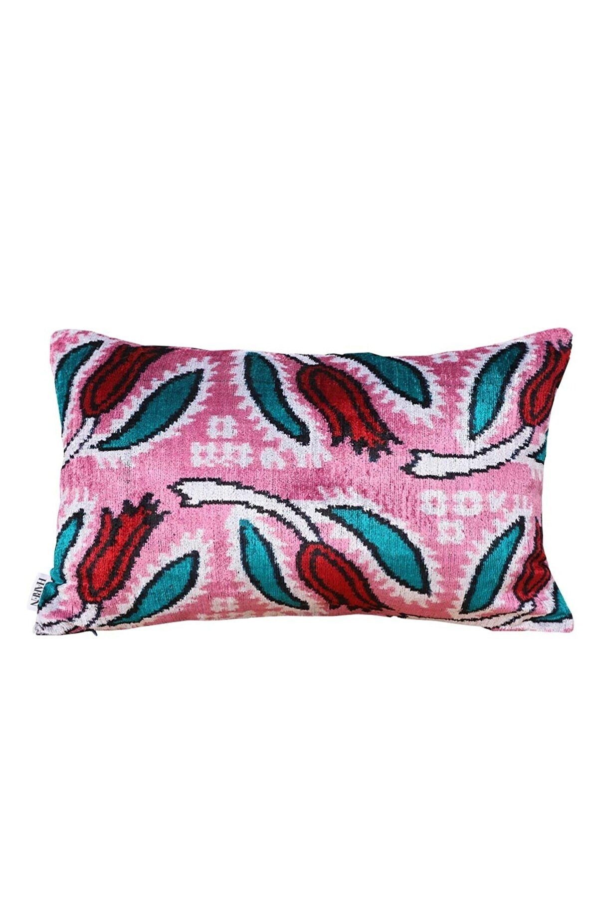 %100 Ipek Kadife Ikat Kumaş- 60x35 Pembe