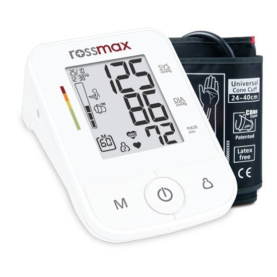 X3 Üst Kol Tipi Otomatik Tansiyon Ölçer • Koluk Algılama • Hareket Algılama • Hipertansiyon risk göstergesi • Düzensiz kalp atışı algılama (IHB) • Son 3 ölçümün ortalaması • 2 kullanıcı için tarih ve zaman belirten 120 ölçüm hafızası • Misafir özelliği • Tek dokunuşla otomatik ölçüm • Uluslararası patente sahip Lateks içermeyen konik kolluk • Kolluk sabitlemeyi sağlayan özel tasarım • Geniş LCD: 57mm x 73 mm